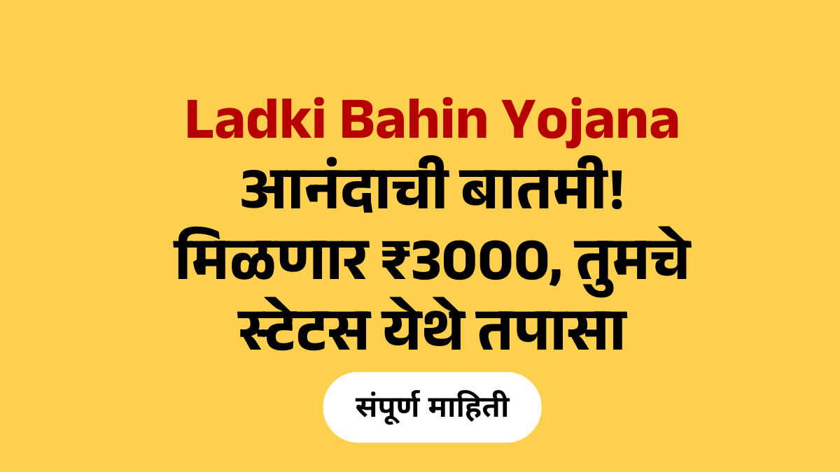 Ladki Bahin Yojana 3000 : आनंदाची बातमी! मिळणार ₹3000, तुमचे स्टेटस येथे तपासा